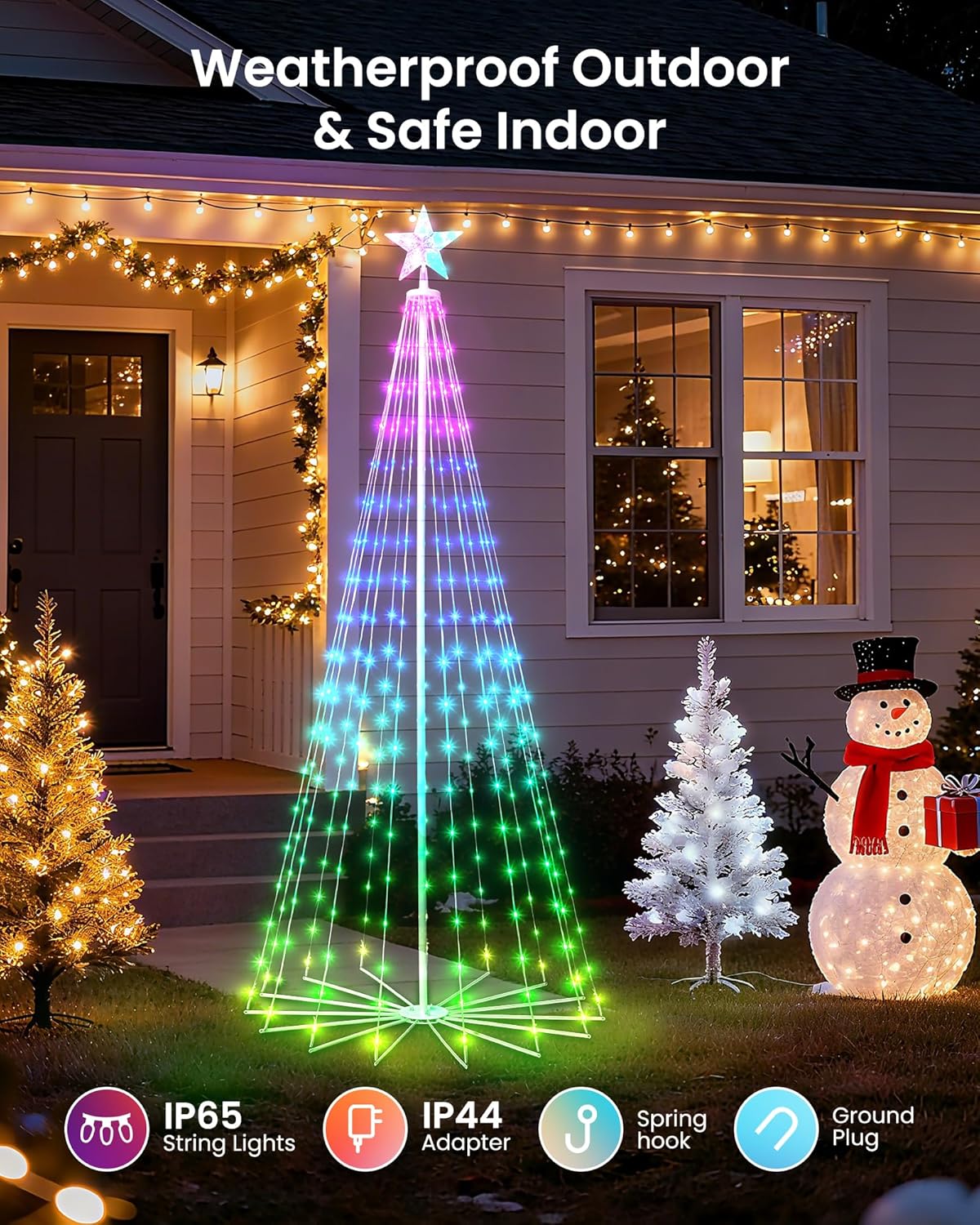 Christmas Cone Tree outdoor decoration string lights LED RGB APP waterproof